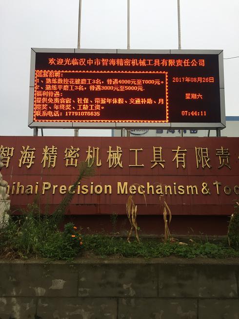 为了提升企业知名度和加强对外宣传的力度,发布对外招聘信息及企业最新动态,公司于2017年8月中旬,在公司大门口由专业团队安装了电子显示屏,通过这块显示屏的安装不仅美化了公司形象而且加强了公司与社会各界的信息互通。